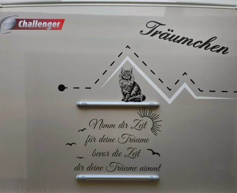 Es war um uns geschehen, seitdem wir 2019 auf der Messe in Offenburg waren und einen Challenger graphite premium mit unglaublich viel Platz auf 6,99 m Länge besichtigten. Zusammen hielten wir uns stets über technische Weiterentwicklungen und die Standorte, an denen dieses Modell zu finden war, auf dem Laufenden. Wir einigten uns auf einen, für beide Seiten akzeptablen Kompromiss. Es sollte ein Modell mit Ford-Motor und Automatikgetriebe mit 170 PS werden. Wir durchforsteten immer wieder die Händler und Anzeigen nach einem Challenger 260 aus dem Jahr 2019, doch leider sind die Preise für ein neues Fahrzeug in der Corona-Zeit um bis zu 20 % gestiegen. Im Jahr 2024 entdeckten wir zufällig endlich einen Challenger, der genau unseren Vorstellungen entsprach und den wir uns finanziell leisten konnten. Die lange Suche und das Warten hatten einen positiven Aspekt: Wir entdeckten ein Modellbaujahr 2022 und konnten uns nach vielen Diskussionen mit dem Verkäufer, der angesichts der zahlreichen Interessierten skeptisch war, einigen. An einem Samstag in Bannemin holten wir unser kleines Träumchen spontan ab.
