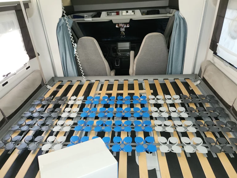 Vor allem bei meiner Frau ist es nicht leicht, den passenden Schlafkomfort zu finden. Leider ist eine Veränderung nicht in großem Ausmaß möglich, da die Lattenroste in den meisten Wohnmobilen fest integriert sind. Nachdem ich etwas gesucht habe, fand ich das, was ich suchte. Günstig und ohne Veränderung des Lattenrosts, einfach zu montieren. Ich finde es auch großartig, dass die Matratze durch den Bettrahmen gehalten wird, da die Aufbauhöhe gering ist. Es ist in drei Zonen unterteilt, von Hart zu weich bis Mittel, was auch durch entsprechende Farben deutlich markiert ist. Mit 2 Sets war ich dabei bei einer Größe des Hub Betts von 1,90 m auf 1,60 m.
