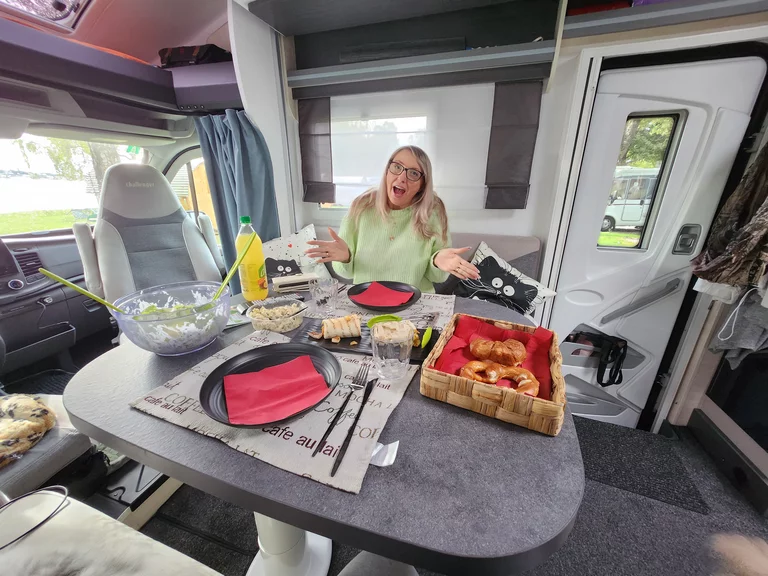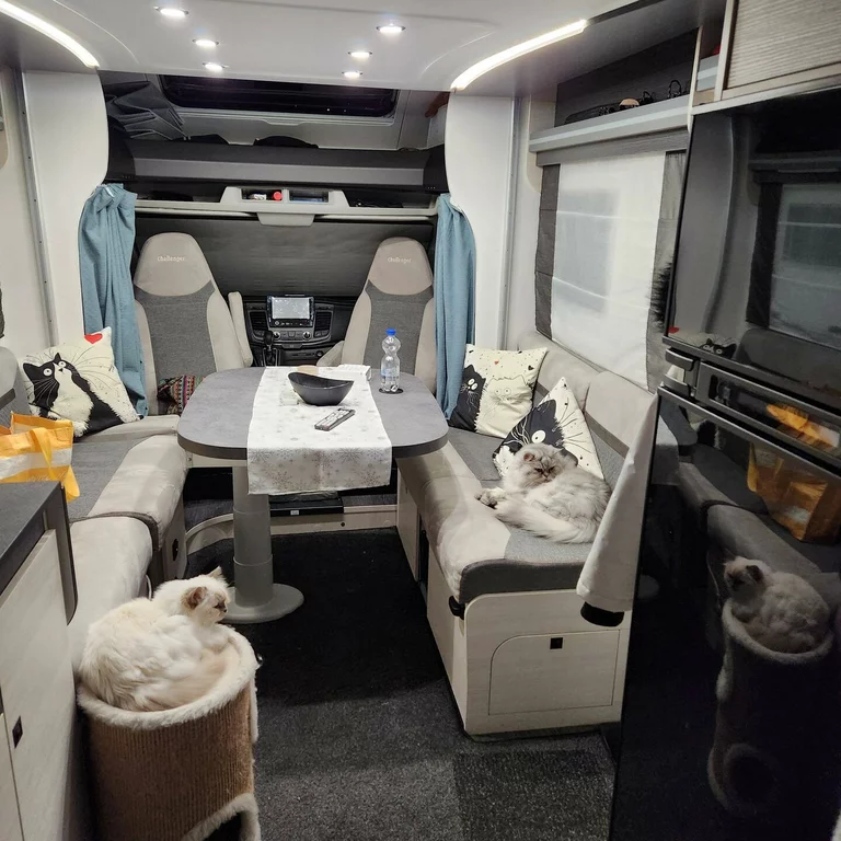 Wir haben den Challenger 260 Grafite Premium erworben, um am Wochenende spontan verreisen oder längere Reisen planen zu können. Da wir unsere Katzen mitnehmen möchten, ist es nicht mehr nötig, dass jemand auf unsere Stubentiger aufpasst, was immer ein Problem war, bis ein Katzensitter gefunden wurde, der auch Zeit hatte. Der Platz wurde mittels einer App ausgewählt und geplant. Die Tour startete in Friesenheim, führte über Freiburg zum Hirschsprung, durchs Höllental und in Richtung Konstanz. Der Campingplatz Hegne ist gut markiert und befahrbar. Da wir zum ersten Mal vor Ort waren, gestaltete sich die Anmeldung unkompliziert und das Personal zeigte sich äußerst hilfsbereit. Die Kurtaxe ermöglicht es, während des Aufenthalts die Bahn zu den umliegenden Städten wie Konstanz, Singen und Engen mit der Bodenseecard West zu nutzen. Der Bahnhof befand sich in nur 200 m Entfernung und war zu Fuß sehr leicht erreichbar. Die sanitären Einrichtungen waren sehr sauber, modern und sogar beheizt. Das Restaurant mit Seeterrasse bot alles, was man braucht, vom Frühstück oder Brötchen bis zum Abendessen. Es gab auch einen Ruheraum mit Büchern, der zum Verweilen einlud.