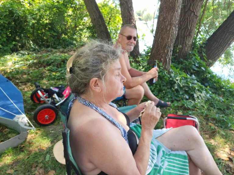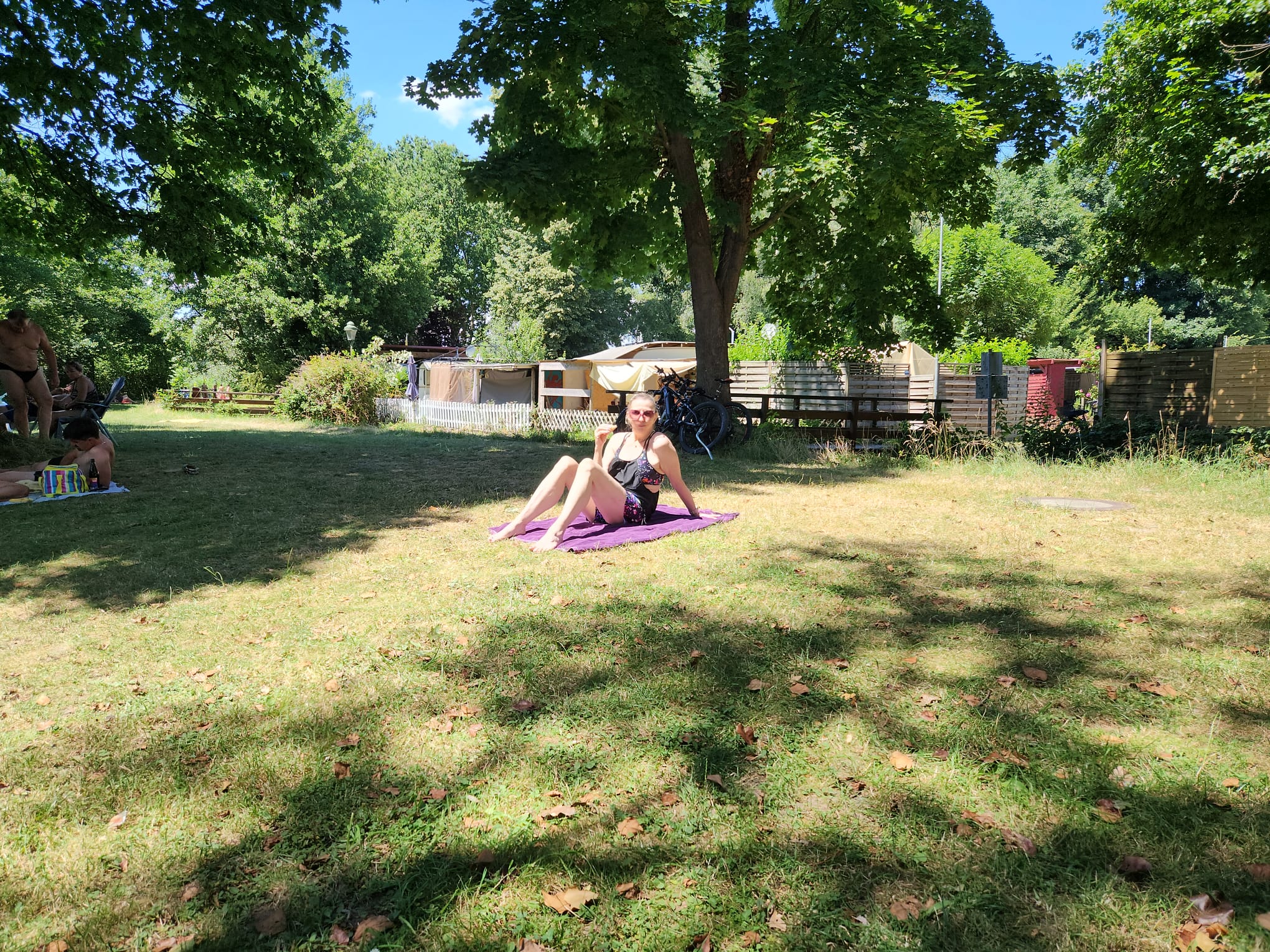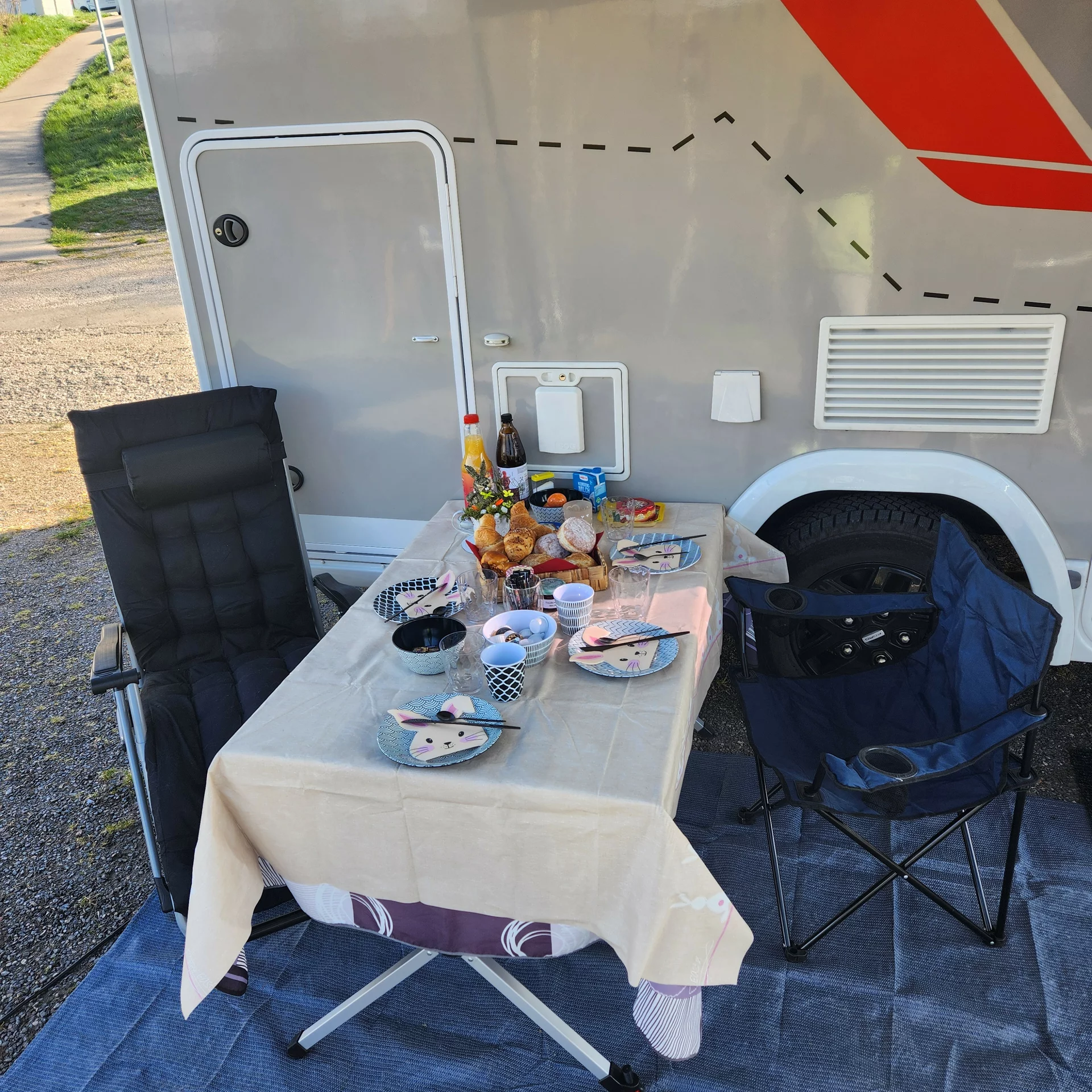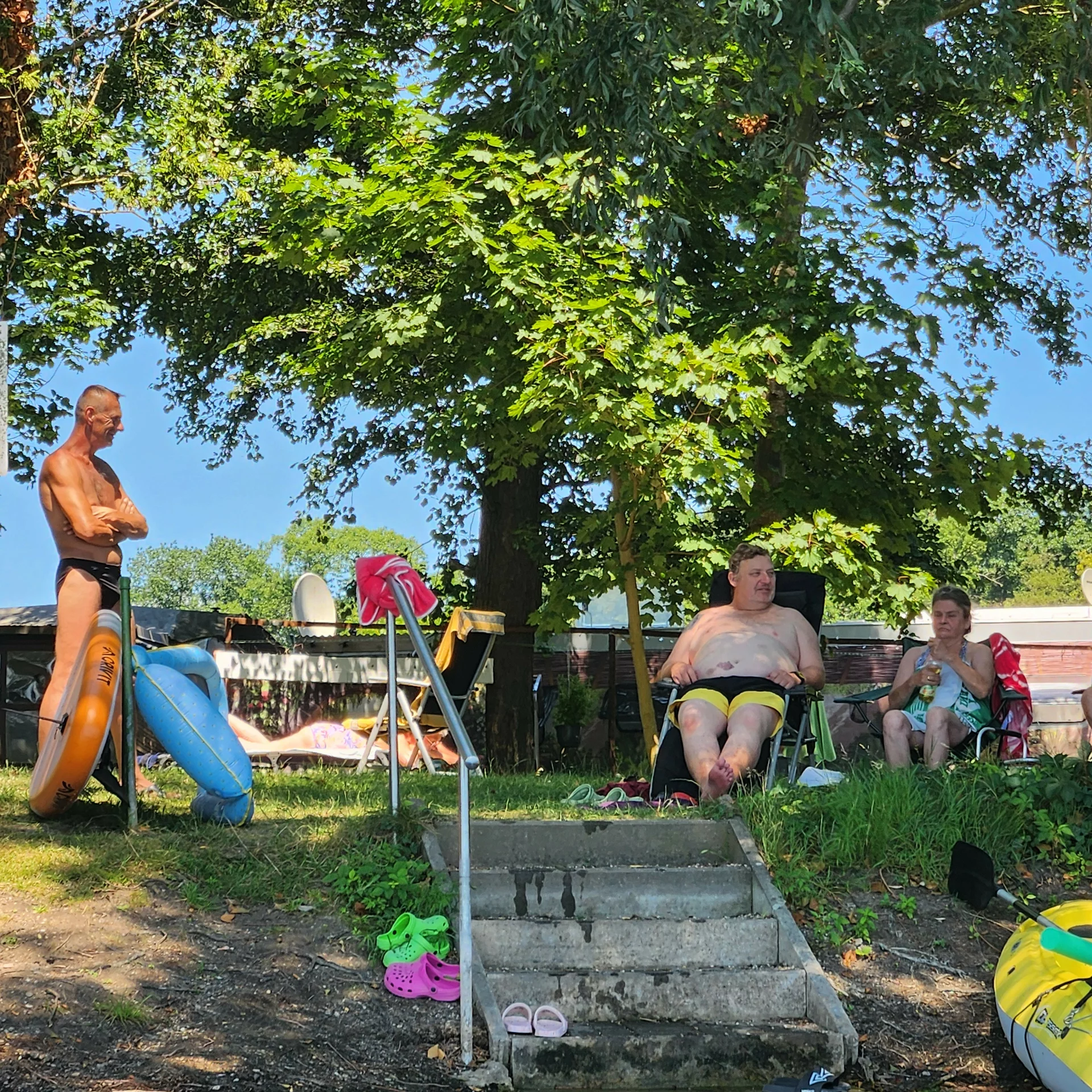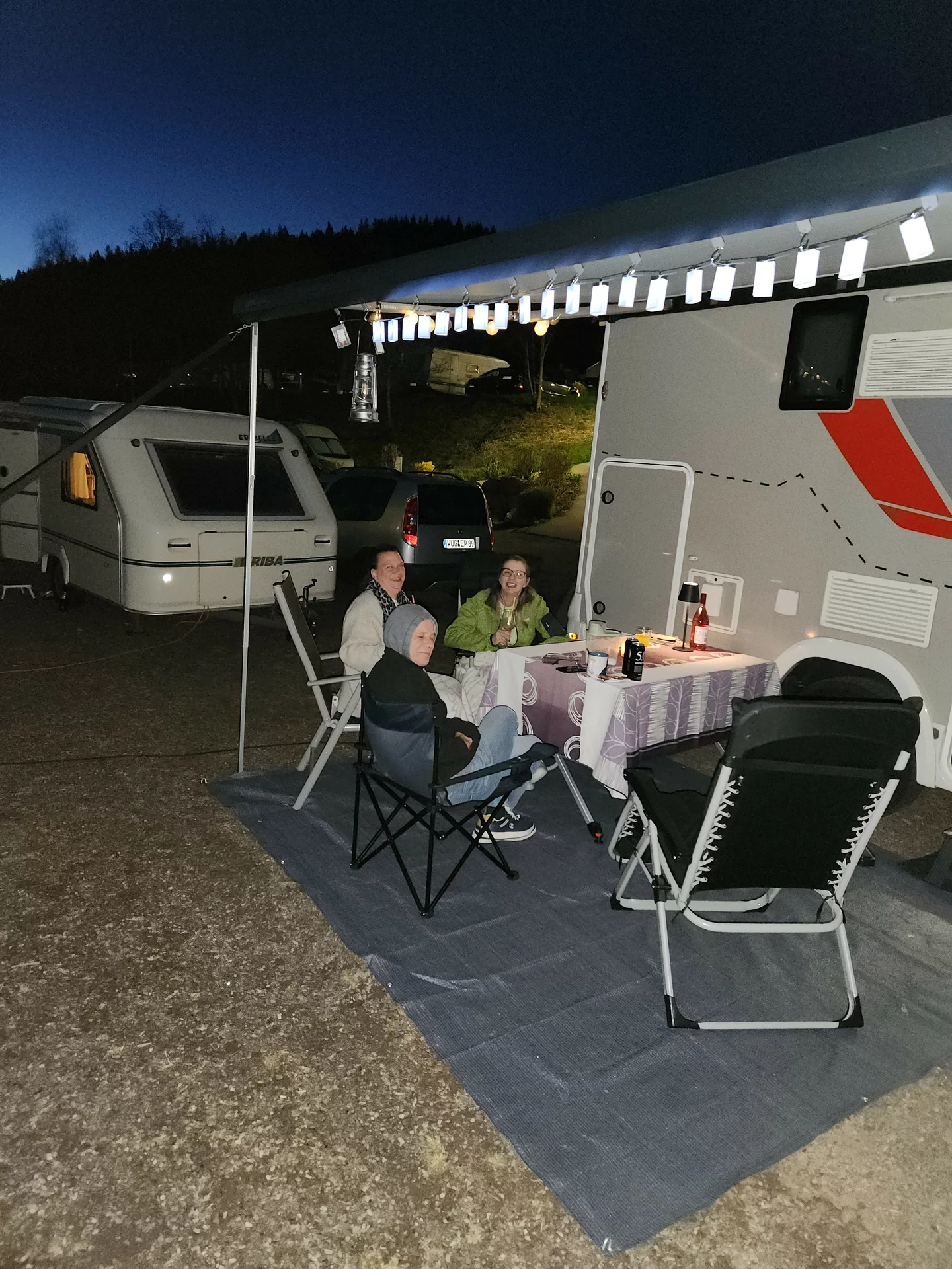 Der Campingplatz liegt in der Rheinebene und bietet einen direkten Blick auf die beeindruckenden Berge des mittleren Schwarzwalds in der Umgebung. Direkt neben dem Campingareal befindet sich ein großer Badesee. Wir sind zum Achernsee gefahren, um dort eine Nacht zu verbringen, da einige Freunde von uns dort einen festen Stellplatz haben. Unsere Verwandten aus Bayern waren ebenfalls unter den Gästen und wir wollten sie natürlich wiedersehen. Auch wir halten uns an das Motto „don’t drink and drive“. Der Abend war sehr gelungen und amüsant.