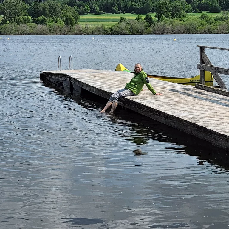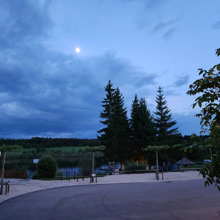 Der Kirnbergsee gilt als das wärmste Gewässer zum Baden im Südschwarzwald und befindet sich im Bräunlinger Stadtteil Unterbränd auf einer Höhe von 785 Metern über dem Meeresspiegel. Er ist ideal für diejenigen, die Ruhe und Entspannung suchen, da er sehr abgelegen ist. Der See bietet Möglichkeiten zum Schwimmen sowie für verschiedene Wassersportarten und besitzt einen 2,5 Kilometer langen Rundweg, der sich hervorragend für einen Spaziergang eignet. Die sanitären Anlagen sind immer sauber und werden täglich gereinigt. Bedauerlicherweise liegen die Stellplätze für kurzfristige Camper weiter oben, was den Zugang zu den sanitären Einrichtungen erschwert, besonders für Menschen mit eingeschränkter Mobilität, da man einige Höhenmeter überwinden muss. Nichtsdestotrotz ist der Platz aufgrund der freundlichen Betreiber empfehlenswert, und wir beabsichtigen definitiv, dort wieder zu campen, hoffentlich bei besserem Wetter.